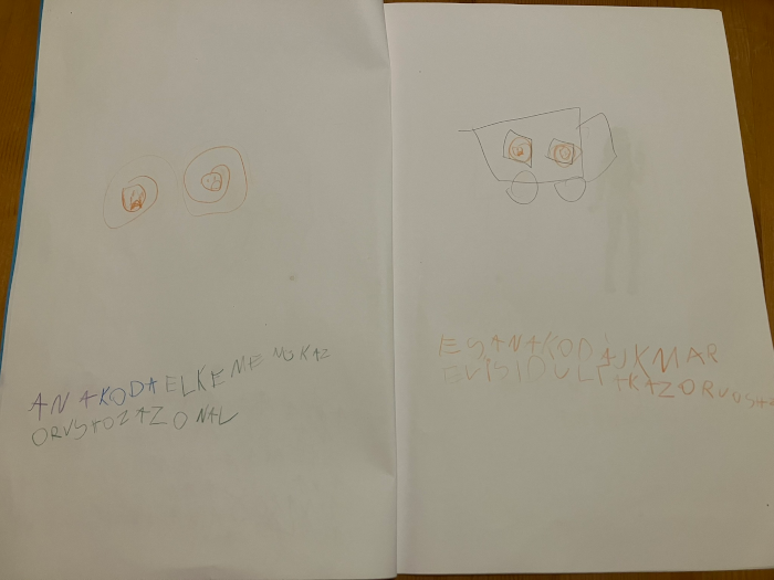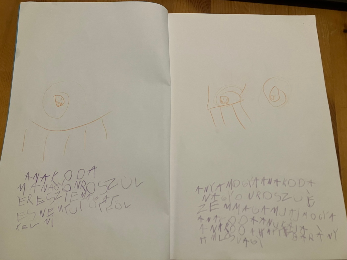 Huhhh ... most elég fáradt vagyok, pontosabban most is. De a képekhez ... Lili mostanában rászokott, hogy meséket ír. Az egyik ... viszonylag hosszabbat lent láthatod. Én már el tudom olvasni ... sok sikert😉.